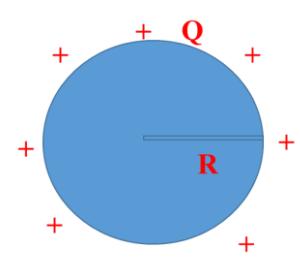 Section titled “(i) Isolated sphere as capacitor:”Let us consider an isolated spherical conductor of radius ‘R’ and charge on its surface is ‘Q’.