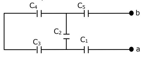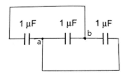 b. In the given capacitors circuit applied potential between a b is 220 V. What is the equivalent capacitance of the network between a and b? Given: . (3)