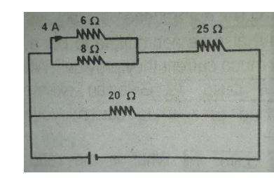 Section titled “Alternative Method”Q.76. Consider the figure below. The current through resister is 4A in the direction shown. What are the currents through the and resistors?