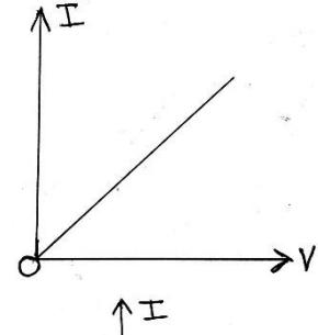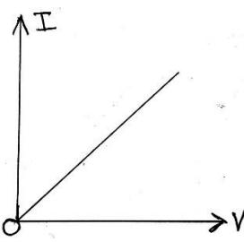 When a graph is plotted between current and voltage, a straight line passing through the origin will be obtained. I-V graph of an ohmic conductor is shown in figure.