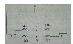 Q.7. What is the potential difference across resister in the circuit given below?