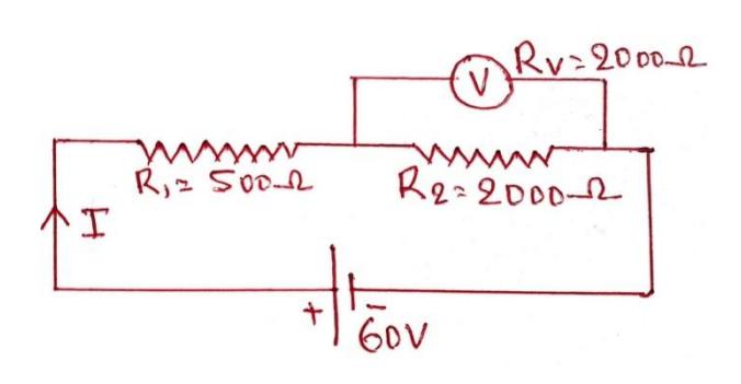 Section titled “Case-2: When voltmeter is connected across 2000Ω resistor,”
