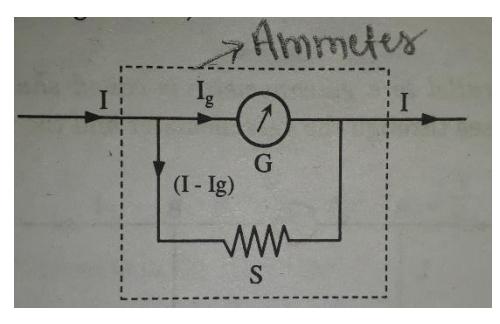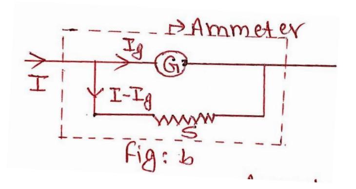Fig: Conversion of galvanometer into an ammeter