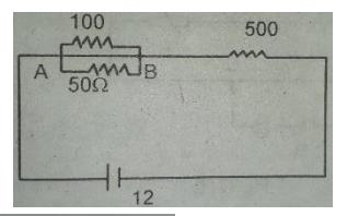 Q. 21. Two resistance of and are placed in series with 50V mains supply. What will be the reading on a voltmeter of internal resistance 2000 when placed across the 1000 resistor? What fractional change in voltage occurs when voltmeter is connected? Ans: 12V, 25%